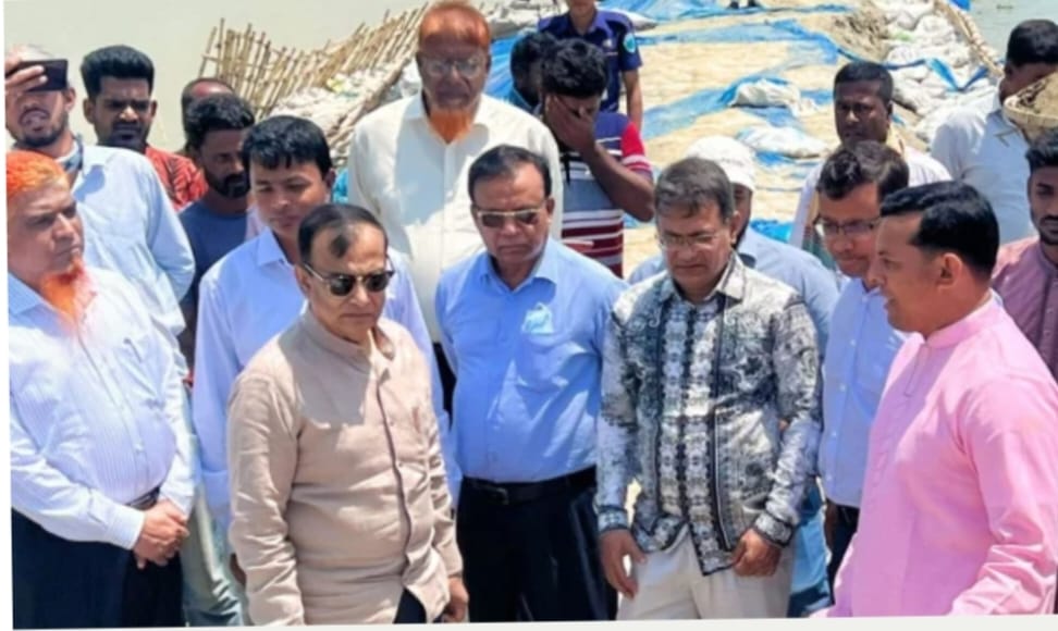 শান্তিগঞ্জ উপজেলার খাই হাওরের ফসল রক্ষা বাঁধ পরিদর্শন পানি সম্পদ প্রতিমন্ত্রী জাহিদ ফারুক।