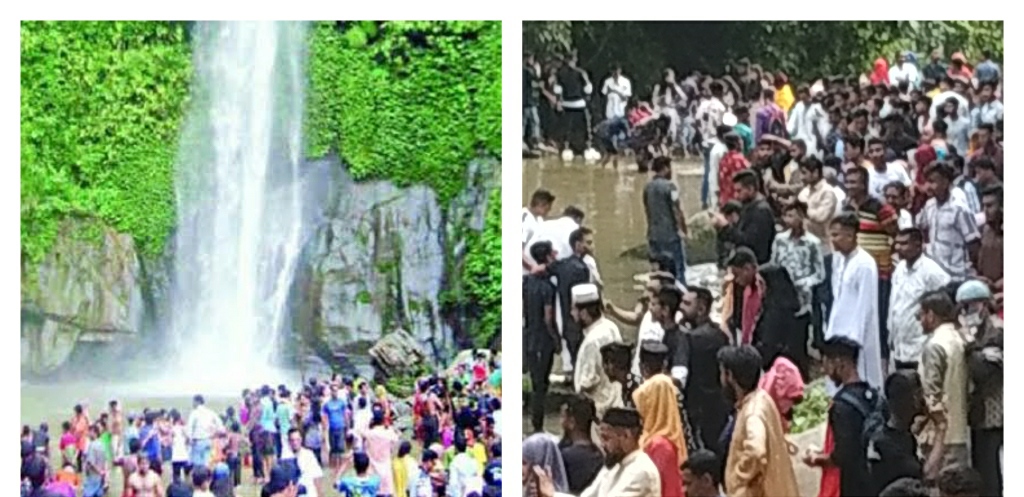 জলপ্রপাতের পানিতে নানা বয়সী মানুষ সাঁতার কাটছেন। হই চই করছেন। কেউ কেউ প্রিয়জনদের ছবি ক্যামেরাবন্ধি করছেন।
