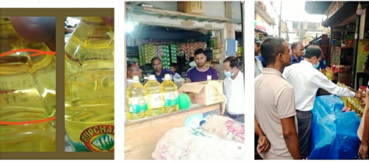 সূত্রে জানা গেছে, অতিরিক্ত দামে পণ্য বিক্রির অভিযোগ পেয়ে বড়লেখা পৌরশহরের হাজীগঞ্জ বাজারের বিভিন্ন ব্যবসাপ্রতিষ্ঠানে অভিযান চালান উপজেলা সহকারী কমিশনার (ভূমি) ও নির্বাহী ম্যাজিস্ট্রেট জাহাঙ্গীর হোসাইন। এসময় সয়াবিন তেলের বোতলের গায়ে লেখা নির্ধারিত দাম মুছে অতিরিক্ত দামে বিক্রি এবং মূল্য তালিকা প্রদর্শন করার অভিযোগে ভোক্তা অধিকার সংরক্ষণ আইন-২০০৯ এর সংশ্লিষ্ট ধারায় পৌরশহরের হাজীগঞ্জ বাজারের ব্যবসায়ী তজমুল আলীকে ২ হাজার, রাজু আহমদকে ২ হাজার, ফুলু মিয়াকে ৩ হাজার, বদরুল ইসলামকে ৫ হাজার, আমিনুল ইসলামকে ৩ হাজার, সাইদুল ইসলামকে ৫ হাজার টাকা জরিমানা করা হয়।