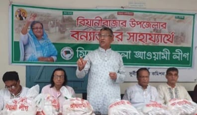 সিলেট জেলা আওয়ামী লীগের পক্ষ থেকে বন্যা আক্রান্ত উপজেলাগুলোতে চলমান ত্রাণ বিতরণ কার্যক্রম এর অংশ হিসেবে বিয়ানীবাজারে শতাধিক বন্যার্ত পরিবারের মধ্যে খাদ্যসামগ্রী দেওয়া হয়।