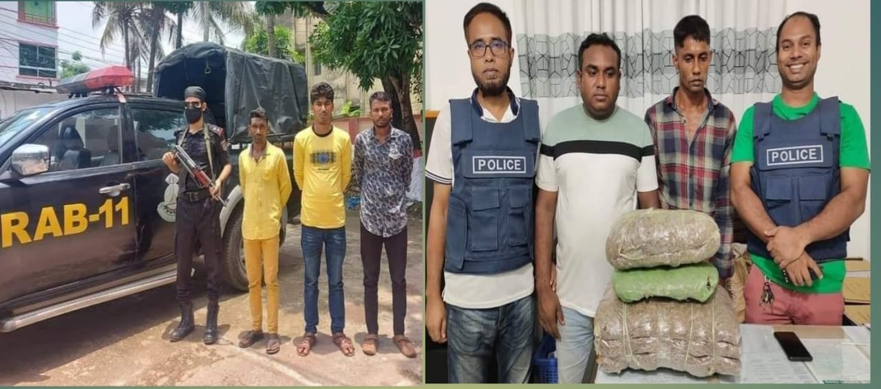 কুমিল্লায় র্যাব ১১ সিপিসি২ এর মাদক বিরোধী পৃথক অভিযানে জেলা সদরের কালির বাজার, কাপ্তান বাজার ও সদর দক্ষিণ উপজেলার পদুয়ার বাজার এলাকা থেকে ১২১ কেজি গাঁজা সহ ৪ মাদক কারবারি গ্রেফতার করেছে।