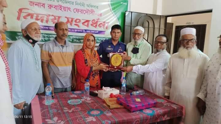 মৎস্য ও প্রাণীসম্পদ মন্ত্রণালয়ের সিনিয়র সহকারী সচিব পদে বদলি জনিত বিদায়ী ইউএনও রুবাইয়াৎ ফেরদৌসী-কে বিদায় সংবর্ধনা দিলেন কুলিয়ারচর উপজেলা মুক্তিযোদ্ধা সংসদ ও মুক্তিযোদ্ধা বহুমুখী সমবায় সমিতি লিঃ।