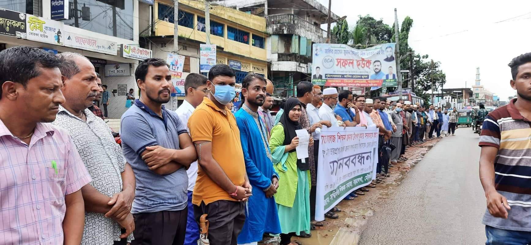 ছাত্রীকে উত্যক্ত করার প্রতিবাদ করায় বখাটে ছাত্রের অতর্কিত হামলায় সাভারের আশুলিয়ার হাজী ইউনুস আলী উচ্চ বিদ্যালয় এন্ড কলেজের প্রভাষক উৎপল কুমার সরকারের হত্যাকারী আশরাফুল আহসান জিতুর ফাঁসি ও শিক্ষকদের হেনেস্তার প্রতিবাদে মানববন্ধন ও প্রতিবাদ সভা অনুষ্ঠিত হয়েছে।