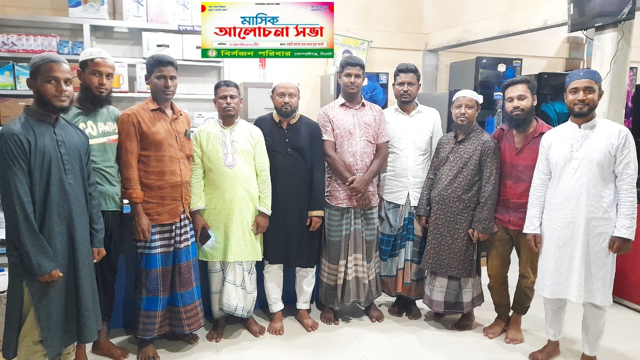 করোনা ও বন্যা পরিস্থিতির কারণে দীর্ঘ ১০ মাস পর সহ সাংগঠনিক মোঃ আমিন উদ্দিনের সঞ্চালনায় সদস্য হ্নদয় আহমেদের কোর আন তেলাওয়াতের মাধ্যমে অনুষ্ঠিত হলো সেচ্ছাসেবী সংগঠন বিসর্জন পরিবারের মাসিক আলোচনা সভা ও ঈদ পূর্ণমিলনী।