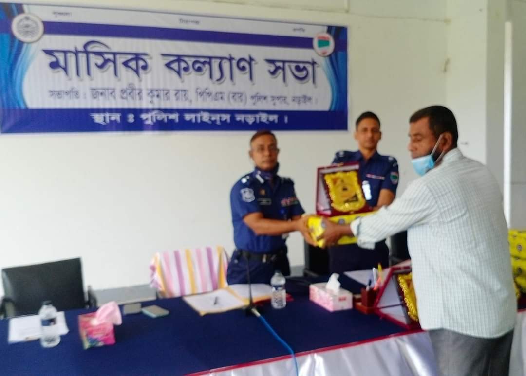 অদ্য ২৮ জুলাই বৃহস্পতিবার সকাল ১০.৩০ ঘটিকায় নড়াইল পুলিশ লাইন্স ড্রিলশেডে অনুষ্ঠিত কল্যাণ সভায় ০৪ জন পুলিশ সদস্যকে অবসর জনিত বিদায় সম্মাননা স্মারক প্রদান এবং সুসজ্জিত সরকারি গাড়িতে করে বাড়িতে পৌঁছে দেওয়ার ব্যবস্থা করেন জনাব প্রবীর কুমার রায়, পিপিএম (বার), পুলিশ সুপার(অতিরিক্ত ডিআইজি পদে পদোন্নতি প্রাপ্ত), নড়াইল।