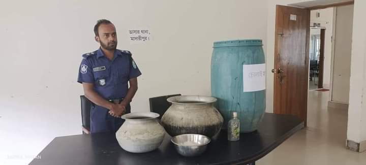 মাদারীপুরের ডাসারে গভীর রাতে অবৈধ মদ তৈরির কারখানায় অভিযান চালায় ডাসার থানা পুলিশ।
